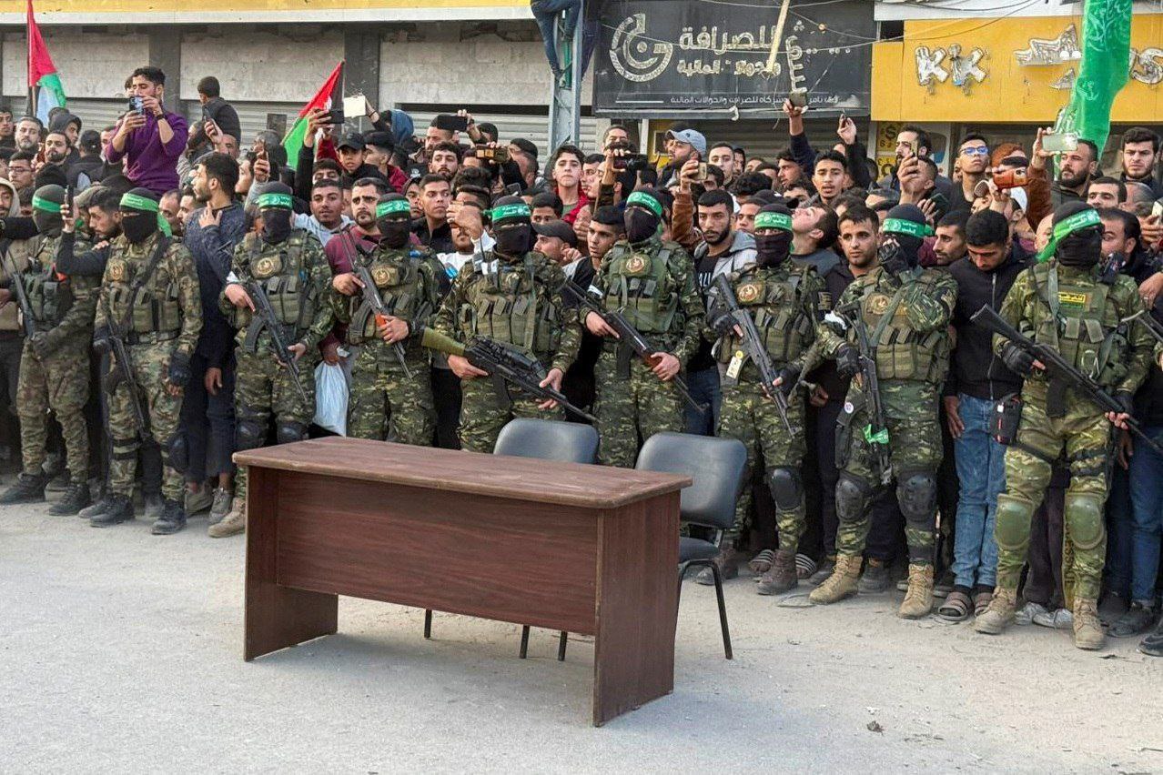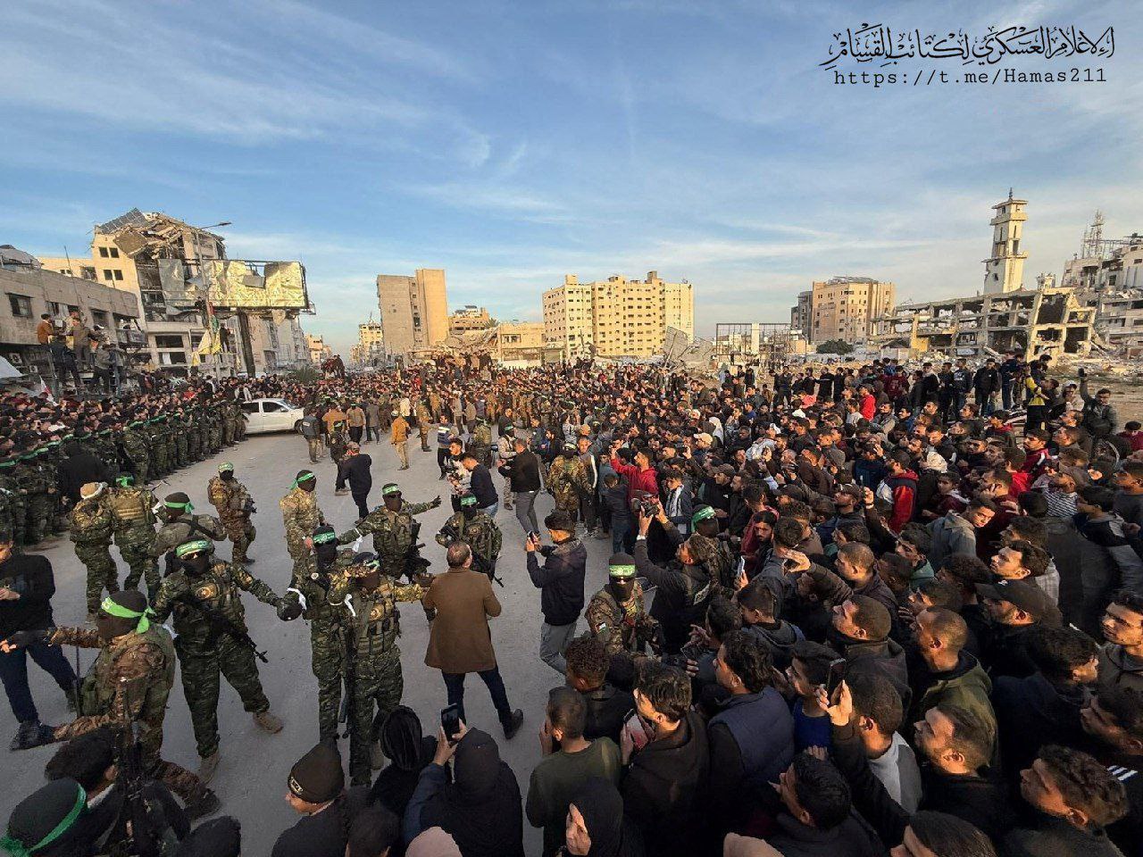 انتشار لعناصر كتائب القسام بحضور جماهيري حاشد، خلال عملية تسليم… - مخيمات لبنان بوست