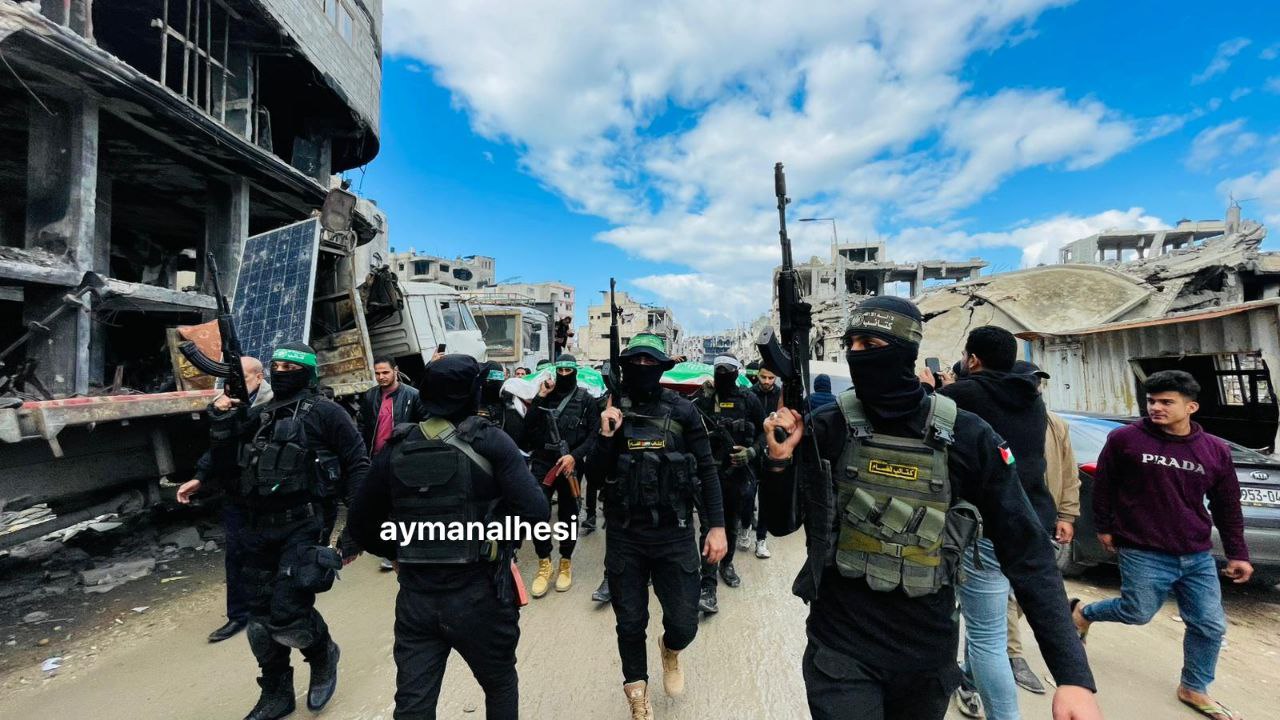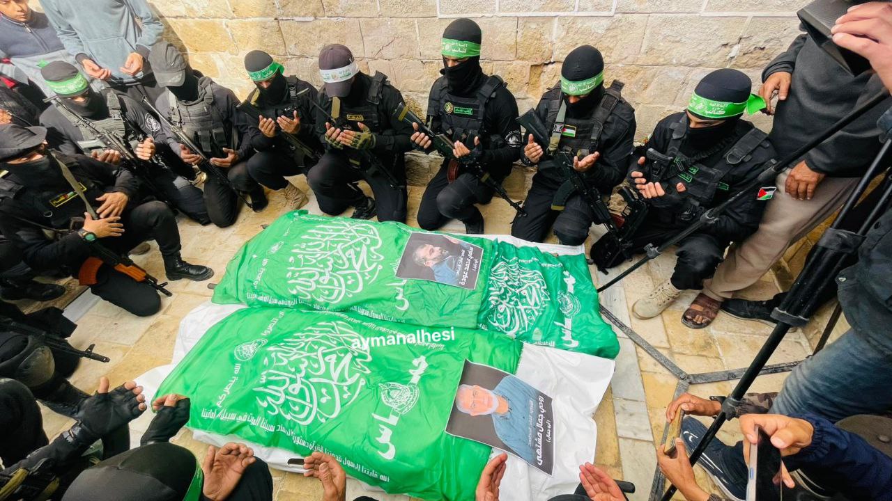 📸 عناصر من كتائب القسام يشيعون جثمانيّ الشهيدين عضويّ المكتب السياسي بحماس روحي مشتهى وسامي عودة اللذَين اغتالهما الاحتلال في حرب الإبادة على قطاع غزة
