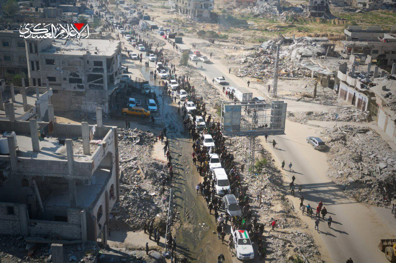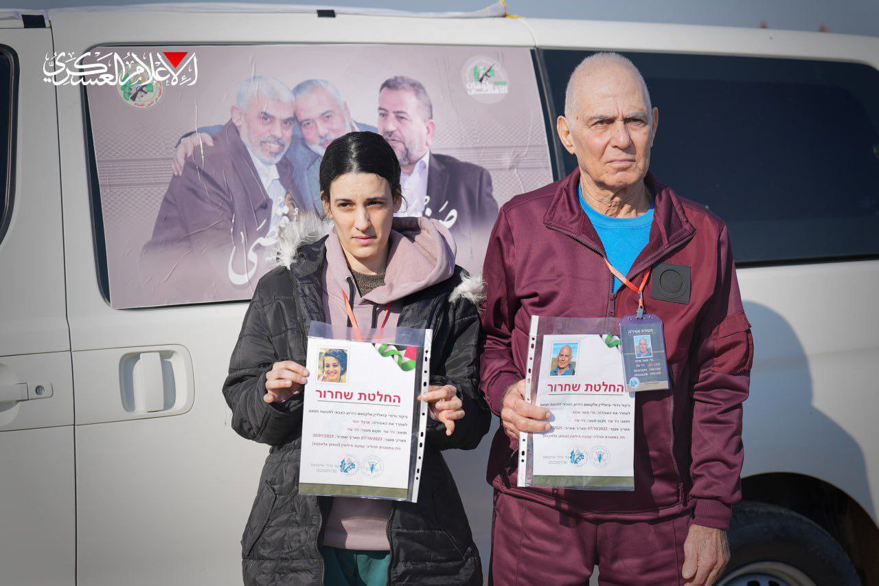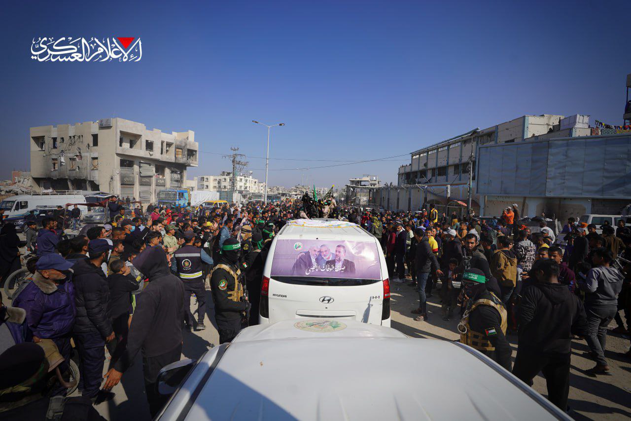 كتائب القسام : صور من تسليم الجزء الثاني من الدفعة الثالثة للأسرى الصهاينة في قطاع غزة ضمن المرحلة الأولى من “صفقة طوفان الأقصى” لتبادل الأسرى