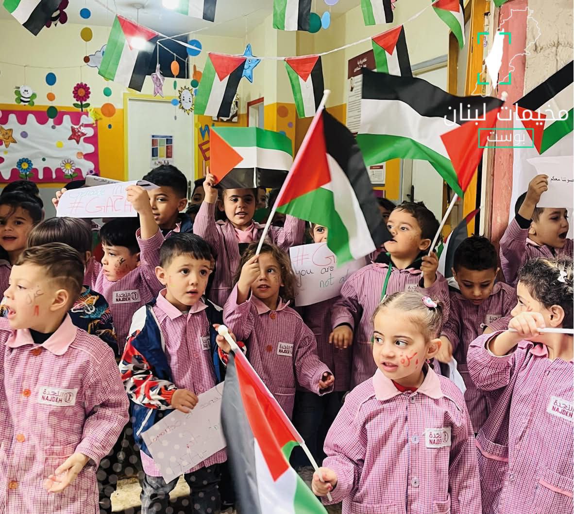 أطفال روضة النجدة يحملون لافتات دعماً لغزة خلال تطبيقهم الأنشطة… - مخيمات لبنان بوست