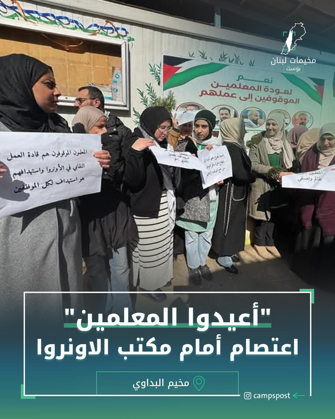 أعيدوا المعلمين اعتصام امام مكتب الاونروا - مخيمات لبنان بوست