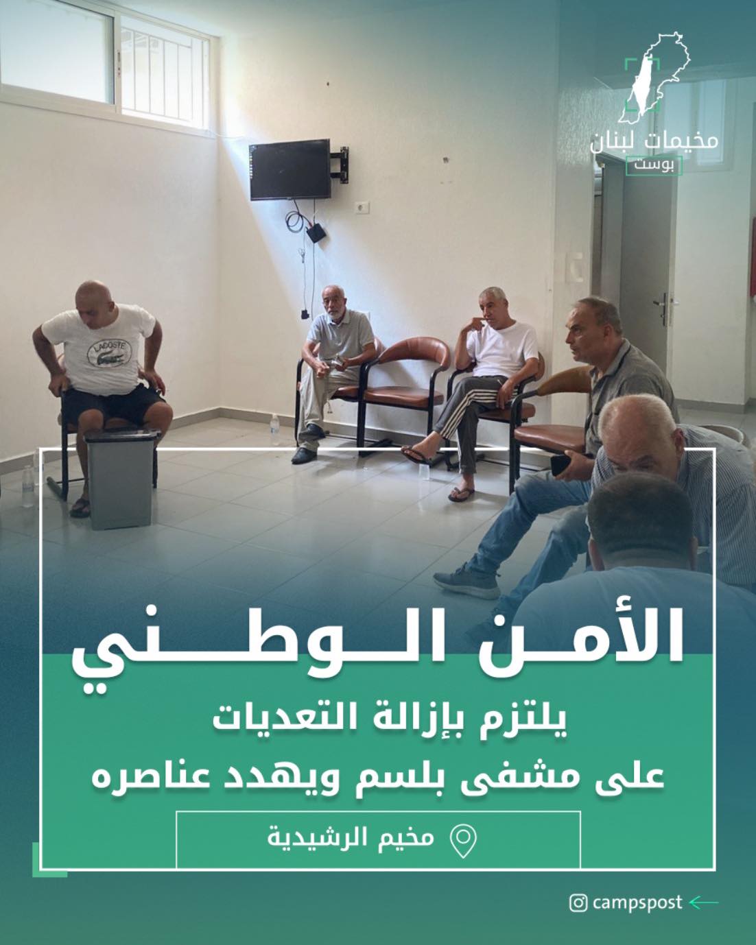 في إطار متابعة أزمة إغلاق مشفى بلسم في مخيم الرشيدية جنوب لبنان، عُقد اجتماع بين ممثلين عن الأمن الوطني الفلسطيني وإدارة الهلال الفلسطيني لبحث سبل وضع حد للتعديات على المولدات الكهربائية التابعة للمشفى.
