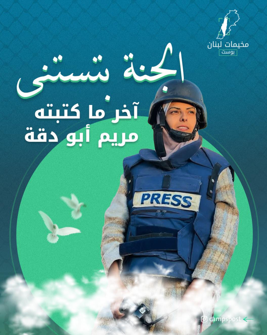 كان آخر مانشرته #مريم_ابودقة على حسابها في إنستغرام هو صورتها بحالة متعبة جداً، مع جملة “الجنة بتستنى”. مريم كانت قد تبرعت بكليتها لوالدها، واستمرت بتغطية الحرب بكلية واحدة في ظل كل هذا الخوف والإرهاق.