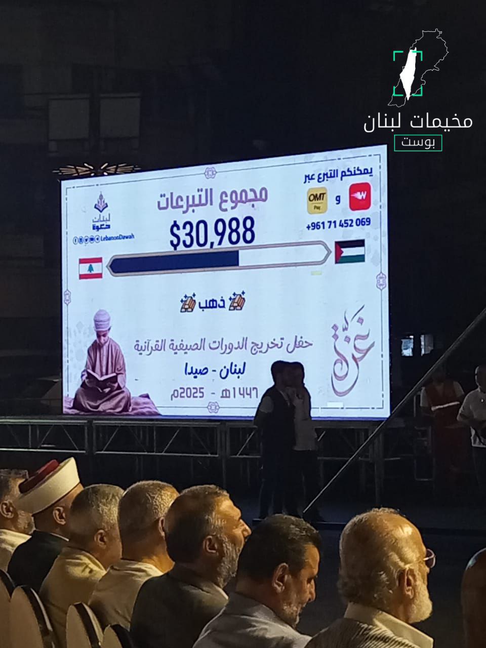 مشاهد من حفل تخريج طلاب الدورات القرآنية والتربوية الصيفية في صيدا والجوار بمشاركة المساجد من مخيمات وتجمّعات اللاجئين الفلسطينيين في مدينة صيدا، وتخلّل الحفل جمع التبرعات لصالح أهلنا في قطاع غزة.
