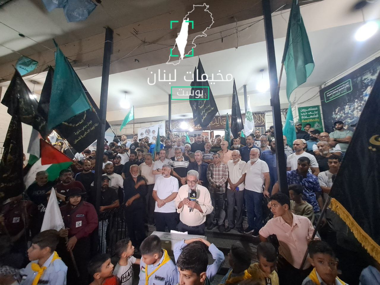 وقفة تضامنية بمناسبة ذكرى الطوفان الثانية ودعماً لصمود غزة و مقاومتها، أمام مسجد خالد ابن الوليد في مخيم عين الحلوة، جنوبي لبنان