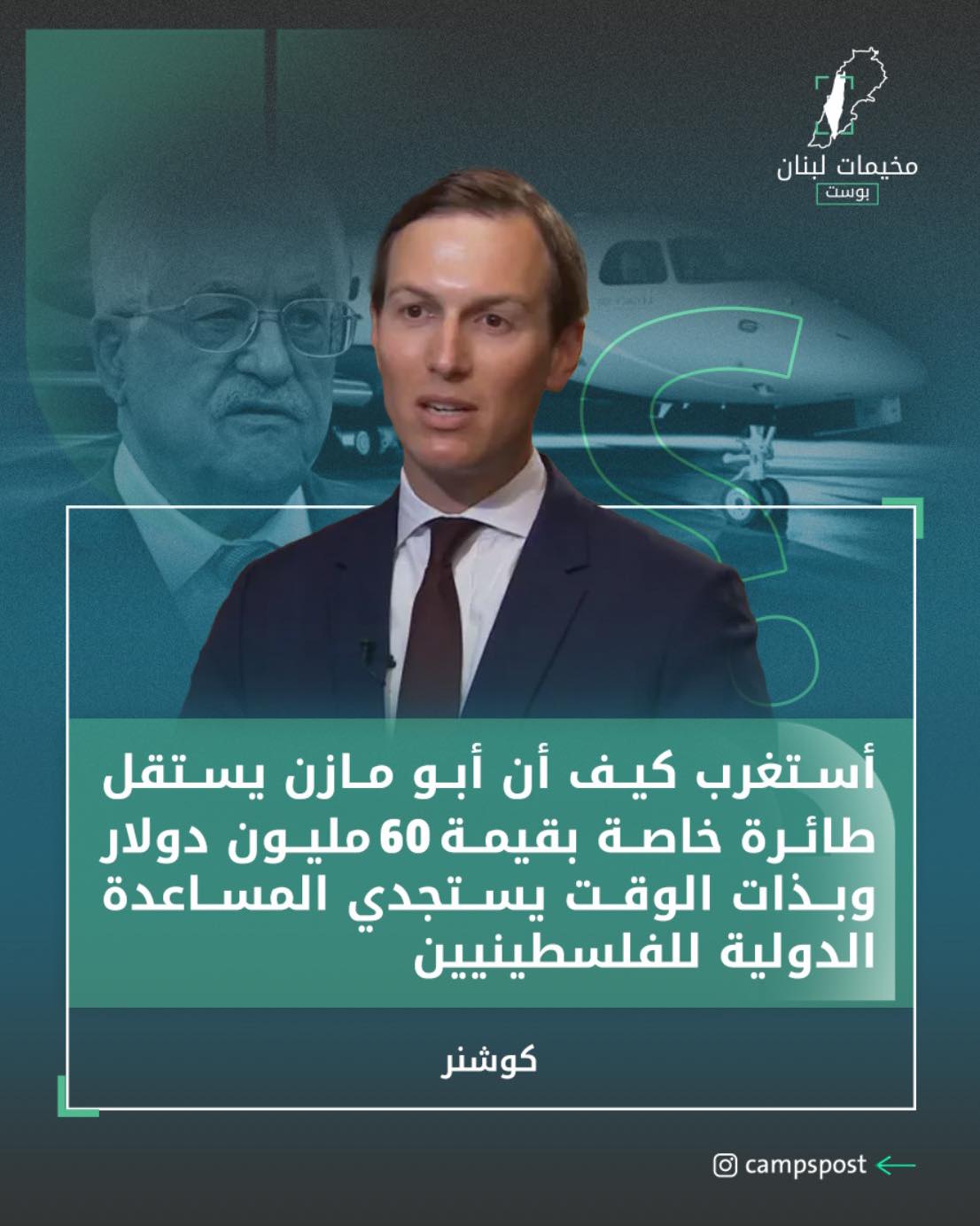 انتقد صهر الرئيس الأميركي “كوشنر” الرئيس أبو مازن متهماً اياه بالفساد والبزخ في حين يواجه شعبه ظروف معيشية قاسية ومعقدة. حبث استغرب كيف يستقل أبو مازن طائرة بقيمة 60 مليون دولار في حين يجوب العالم بحثاً عن أموال للفلسطينيين..