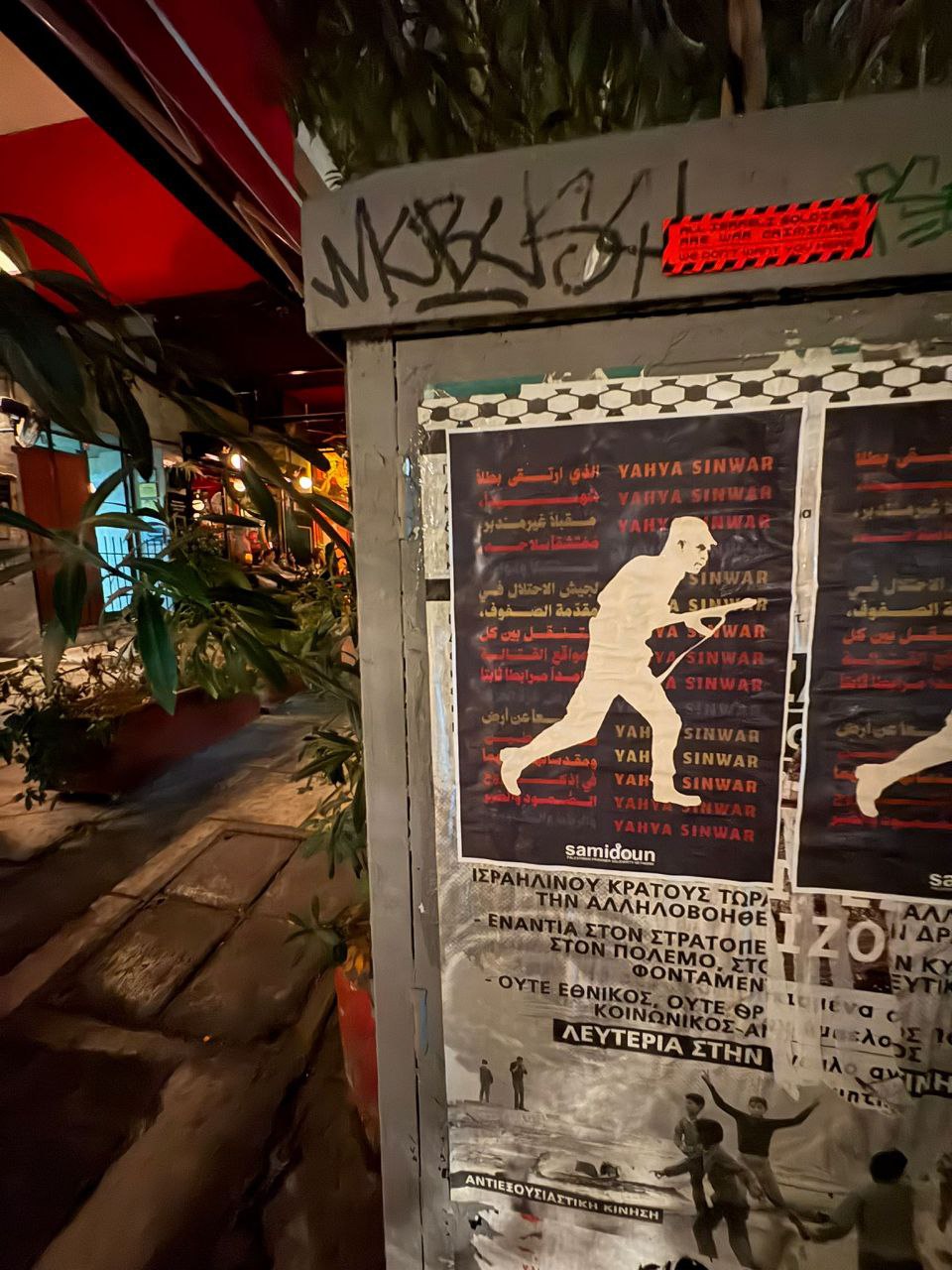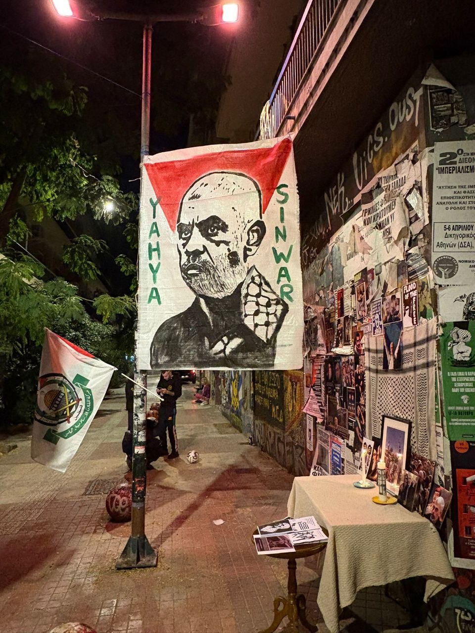 *أثينا: صامدون تحيي الذكرى السنوية الاولى لاستشهاد السنوار* نظمت شبكة صامدون للدفاع عن الاسرى الفلسطينيين بالتعاون مع عدد من القوى الثورية في اثينا فعالية ليلية في الذكرى السنوية الاولى لاستشهاد القائد الوطني الكبير يحيي السنوار وجرى تعليق مئات الملصقات في عدد من الاحياء الشعبية في العاصمة اثينا فيما اشعلت الشموع في زوايا عدد من الشوارع بمشاركة انصار فلسطين في المدينة