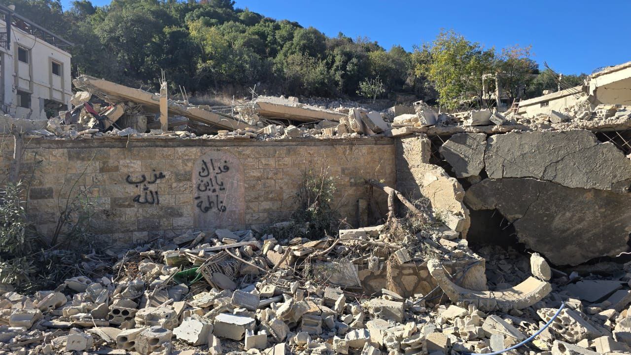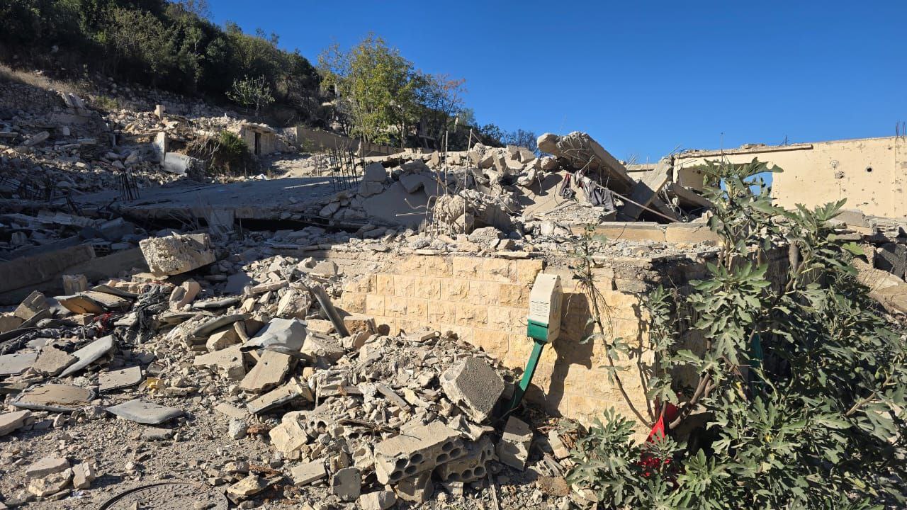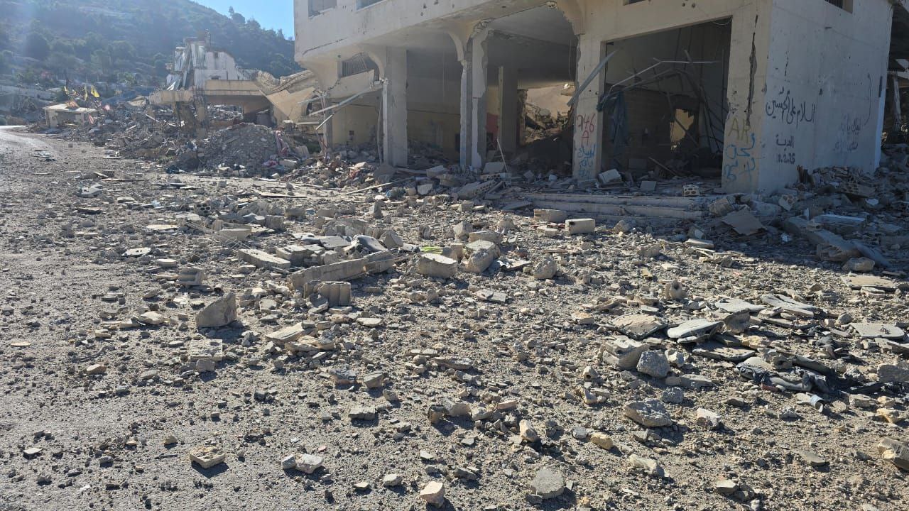 آثار الدمار الذي خلفه الاحتلال عقب تفجيره النادي الحسيني بعد توغل إلى بلدة عديسة جنوب لبنان.