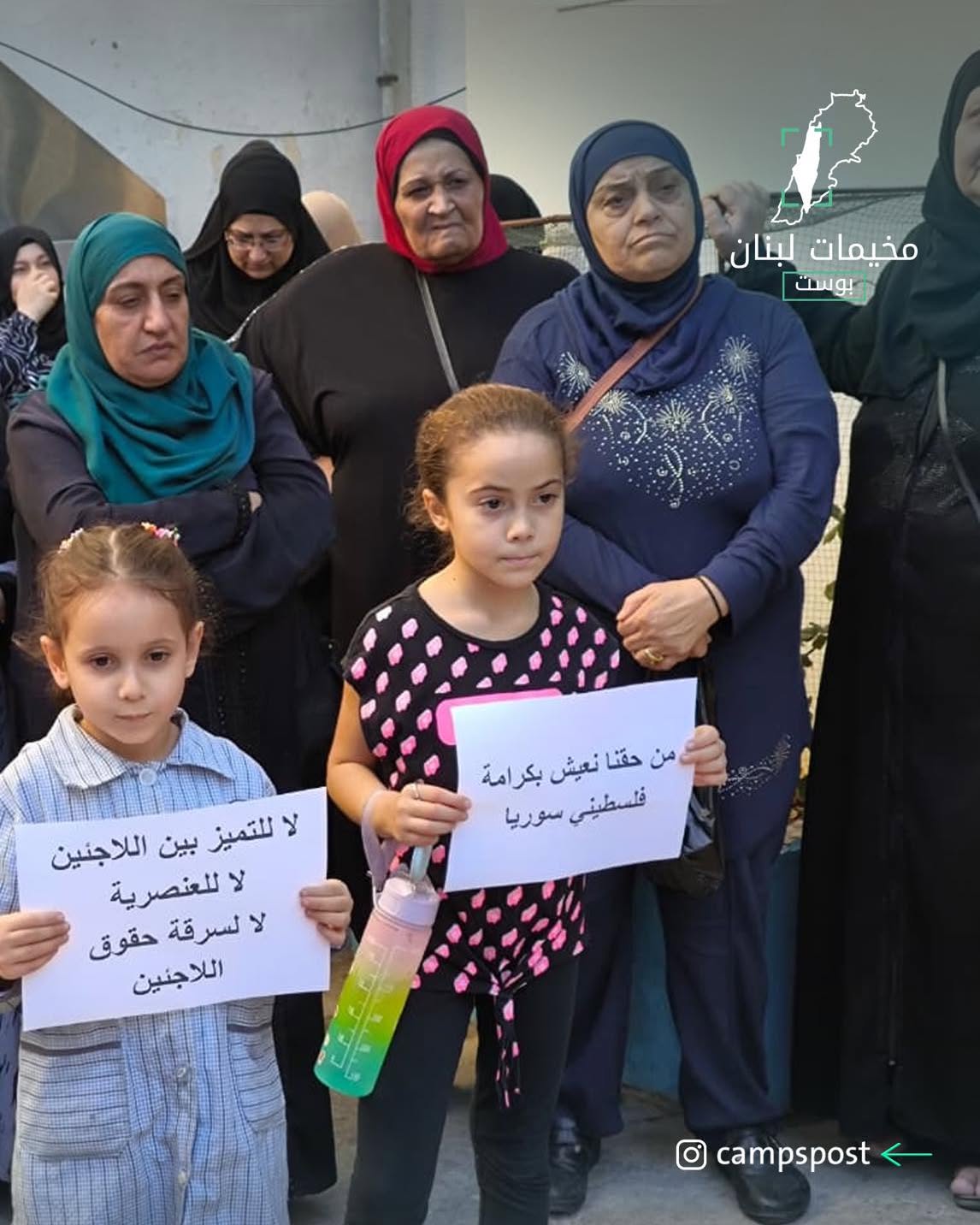 وطالب المعتصمون بضرورة تحسين الخدمات الطبية والتعليمية والإغاثية والقانونية، مشيرين إلى أن الفلسطينيين السوريين في لبنان يعانون من أوضاع قانونية معقدة.