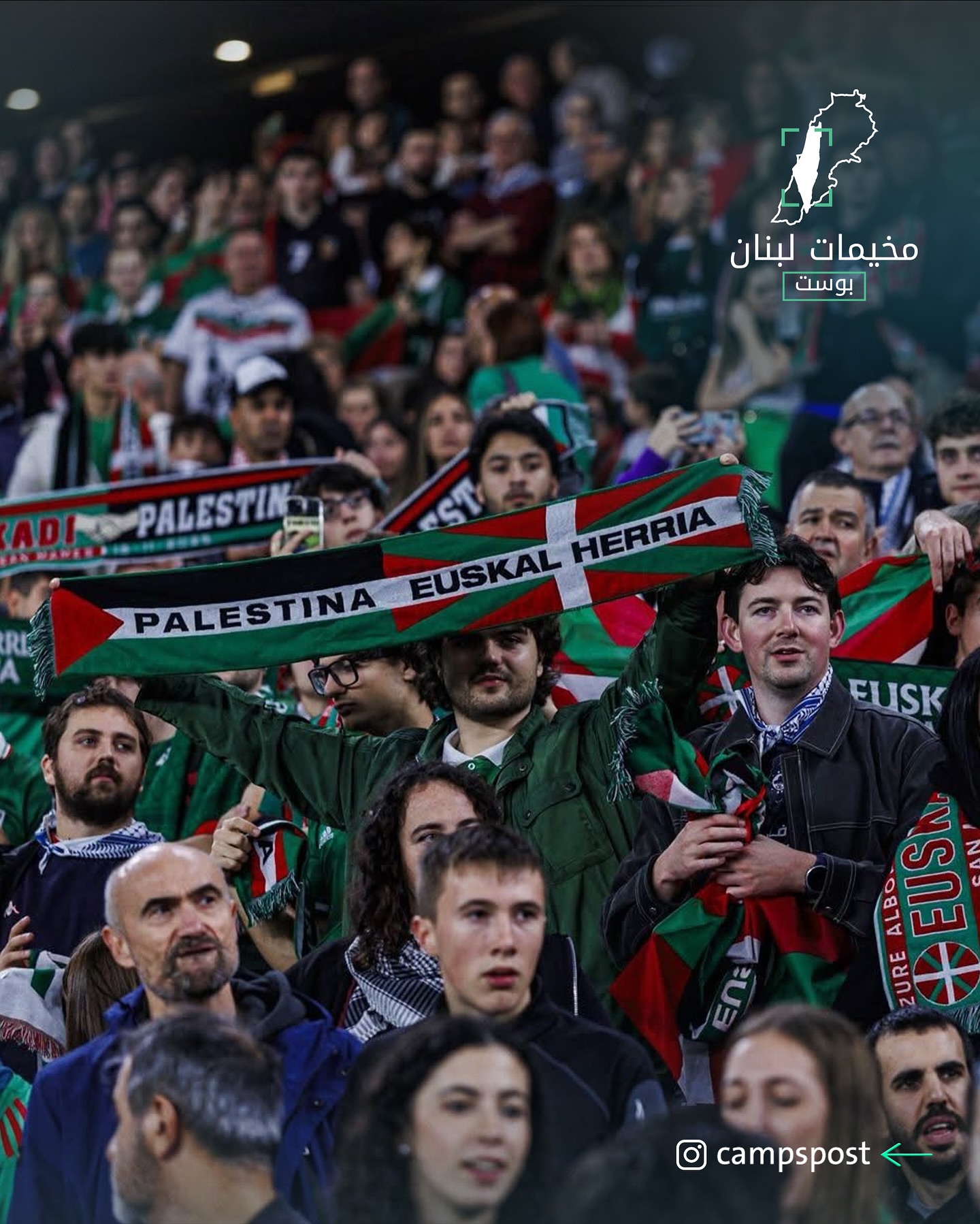 أكثر من 50 ألف مشجع حوّلوا مباراة ودية بين فلسطين وإقليم الباسك الإسباني إلى عرض قوي لدعم الفلسطينيين، مرددين شعارات مؤيدة لغزة، رافعين لافتات وأعلامًا مؤيدة لها.