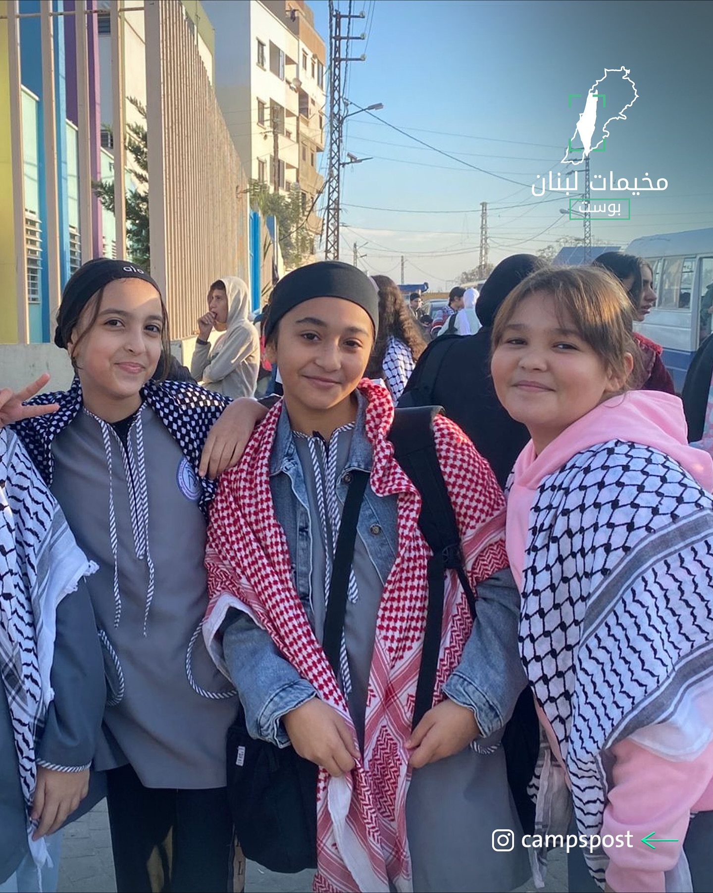 طالبات مخيم نهرالبارد شمال لبنان، استجابوا للحراك الشعبي وارتدوا الرموز الوطنية الفلسطينية تحدياً لقرار إدارة الاونروا في لبنان