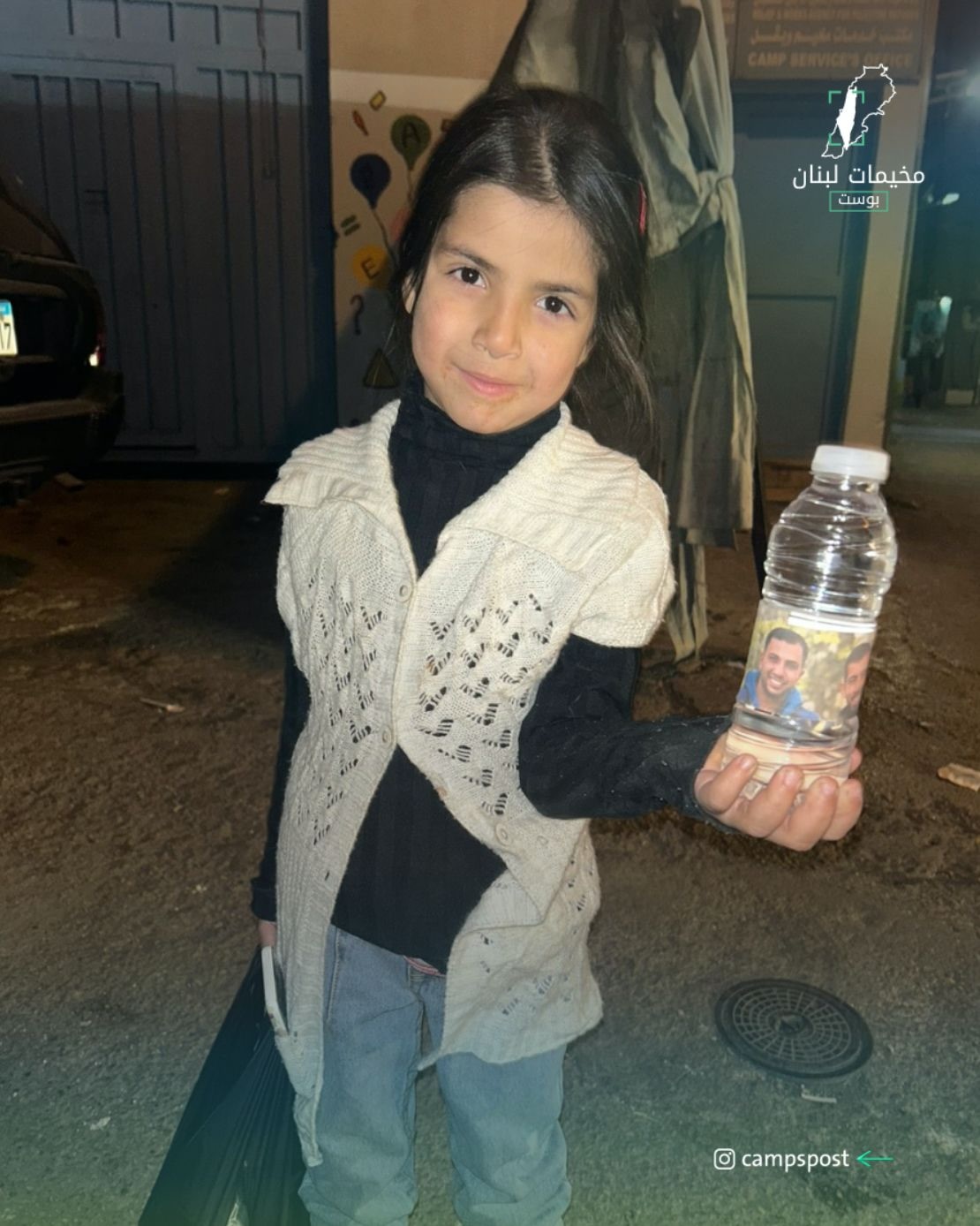 الطفلة تولين ابنة مخيم الجليل للاجئين الفلسطينين في مدينة بعلبك اللبنانية، جالت في شوارع المخيم ووزعت المياه عن روح الشهـ.ـيدين أنس الشريف وصالح الجعفراوي