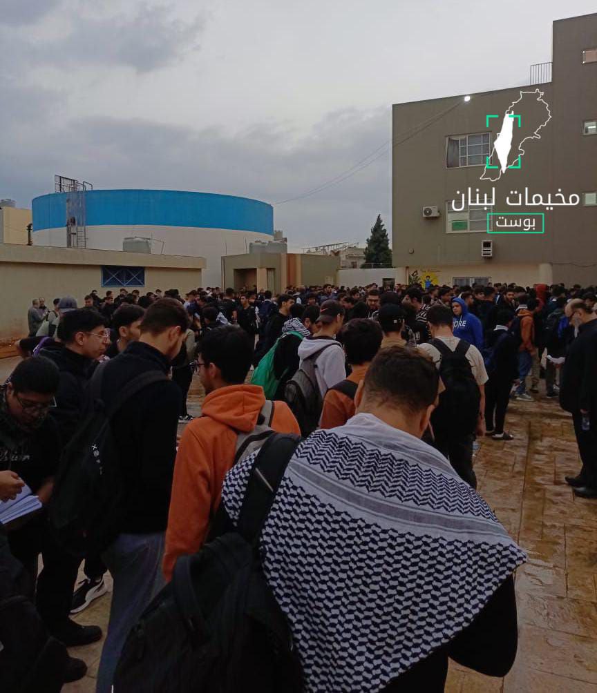 نظّم طلاب البرلمان في ثانوية بيسان وقفة تضامنية داخل المدرسة، تضمّنت إلقاء كلمة تنديدًا بالمجزرة التي وقعت في مخيم عين الحلوة، والتي استُشهد فيها طالبان من طلاب الثانوية.