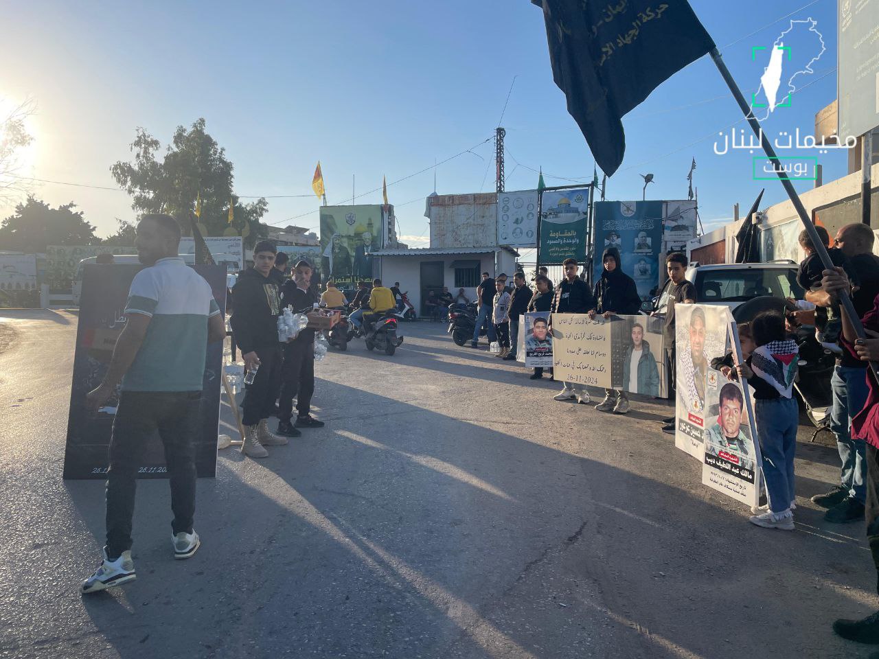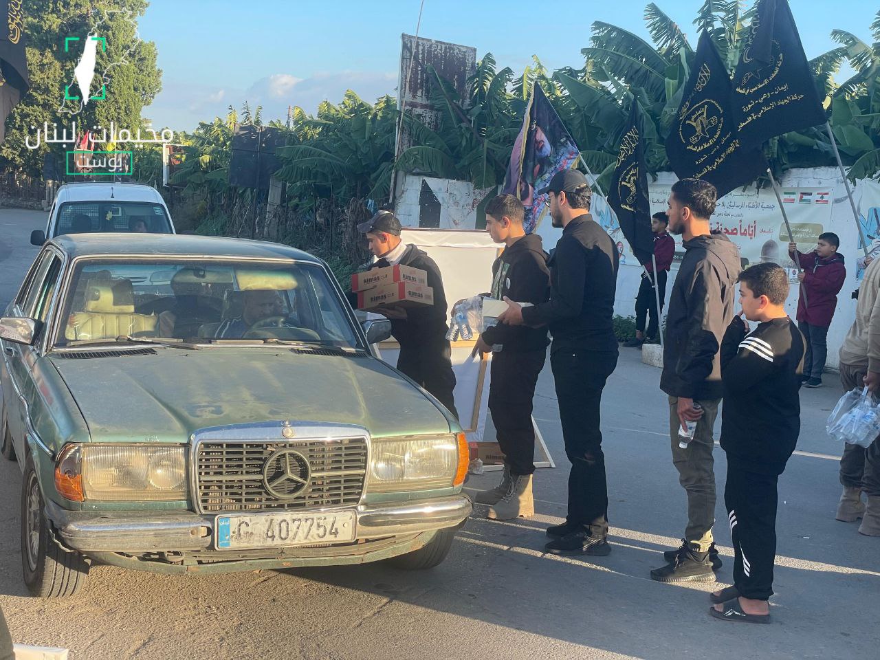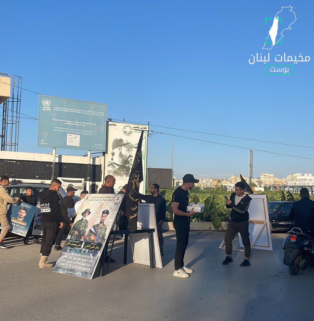 قامت حركة الجهاد الإسلامي بمخيم الرشيدية، جنوبي لبنان، بعمل حاجز محبة على مدخل المخيم لتوزيع المياه والحلوى عن أرواح شهداء المخيم الذين ارتقوا خلال الحرب في مثل هذا اليوم العام الماضي.