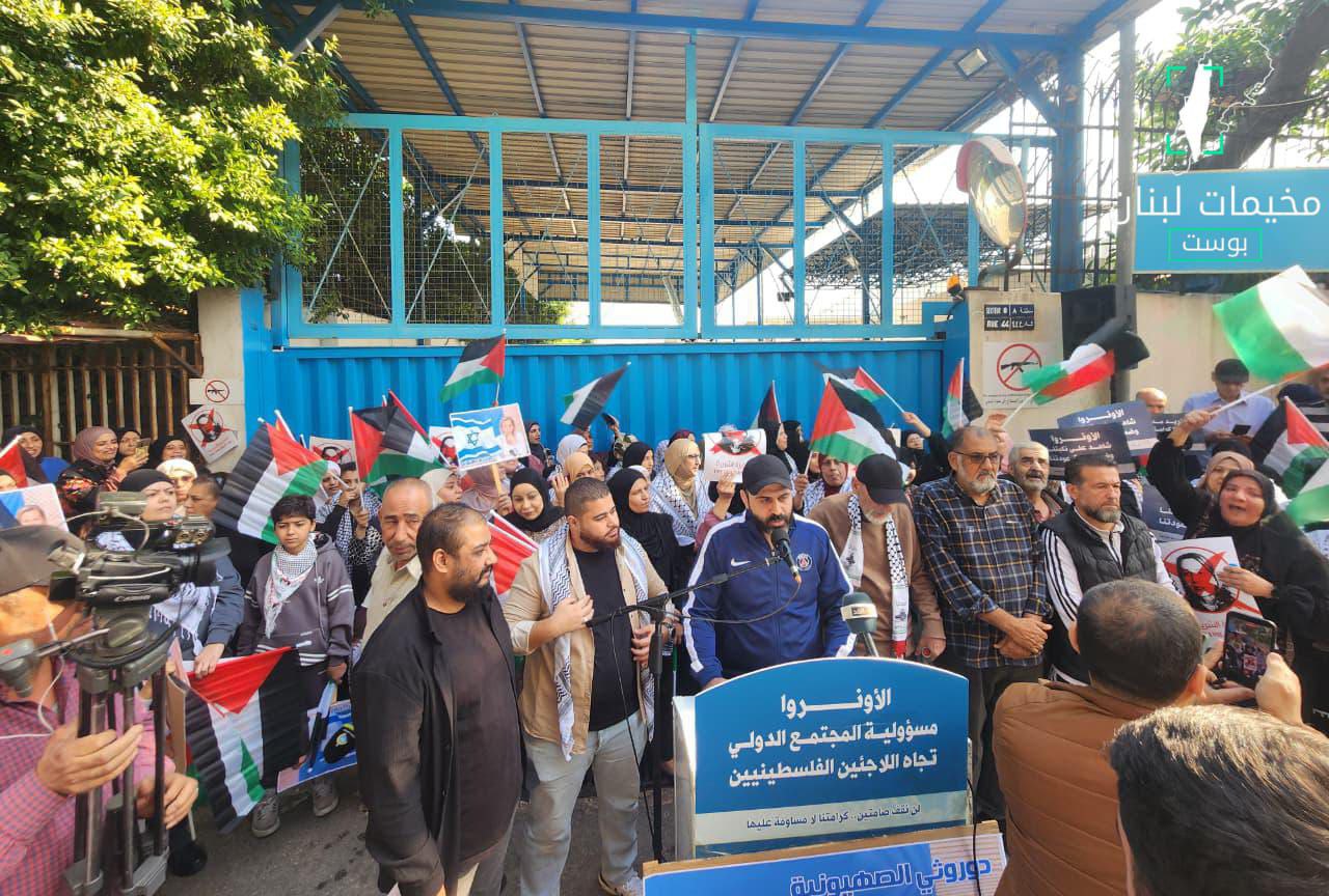 مشاهد من صلاة الجمعة أمام مبنى الأونروا الرئيسي في بيروت الذي سبقه احتجاج بسبب تقصير الأونروا وسياساتها بحق اللاجئين الفلسطينيين في لبنان