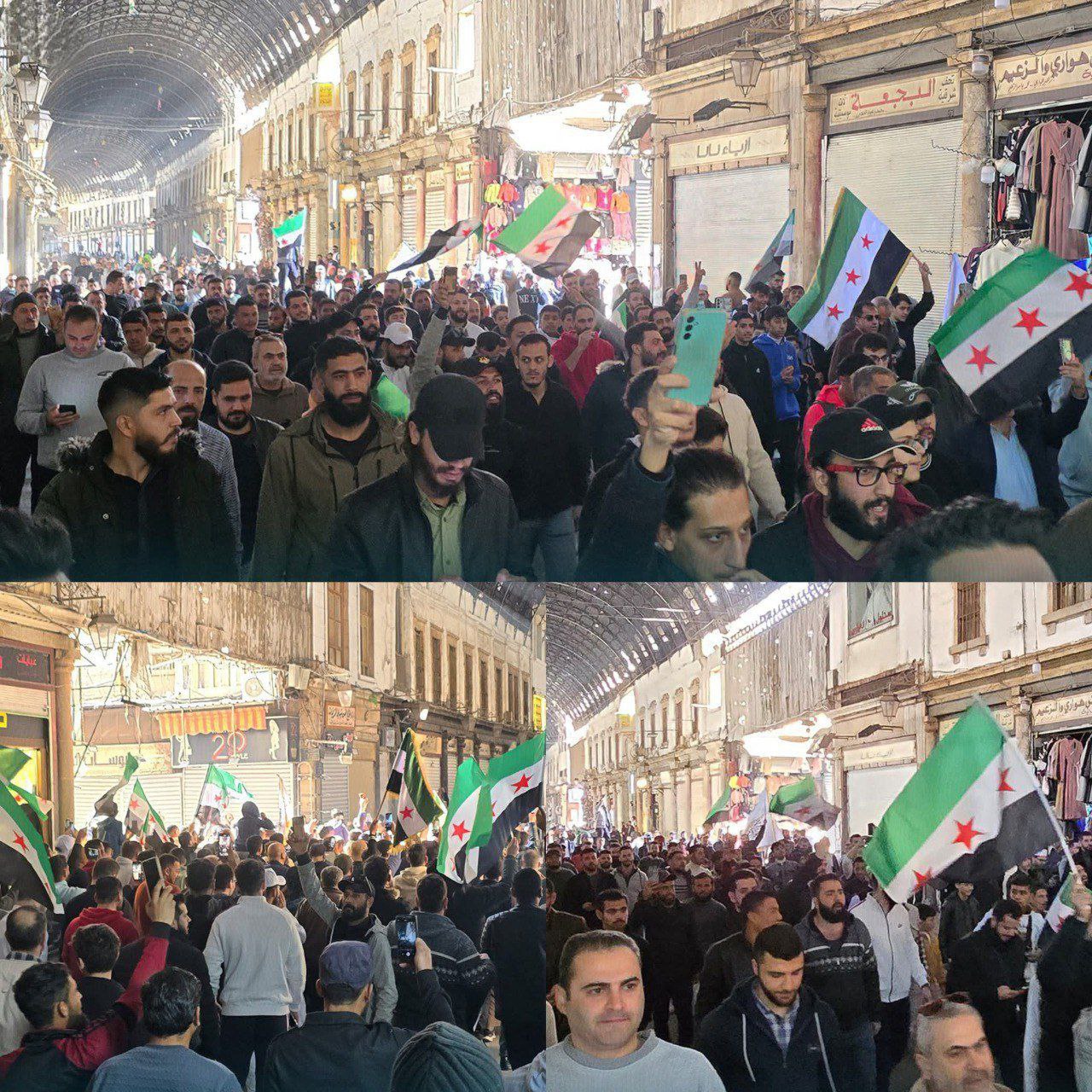 مسيرات جماهيرية في العاصمة السورية دمشق دعمًا لبلدة بيت جن جنوب سوريا، عقب تصدي أهالي البلدة لمحاولة توغلٍ للقوات الإسرائيلية.