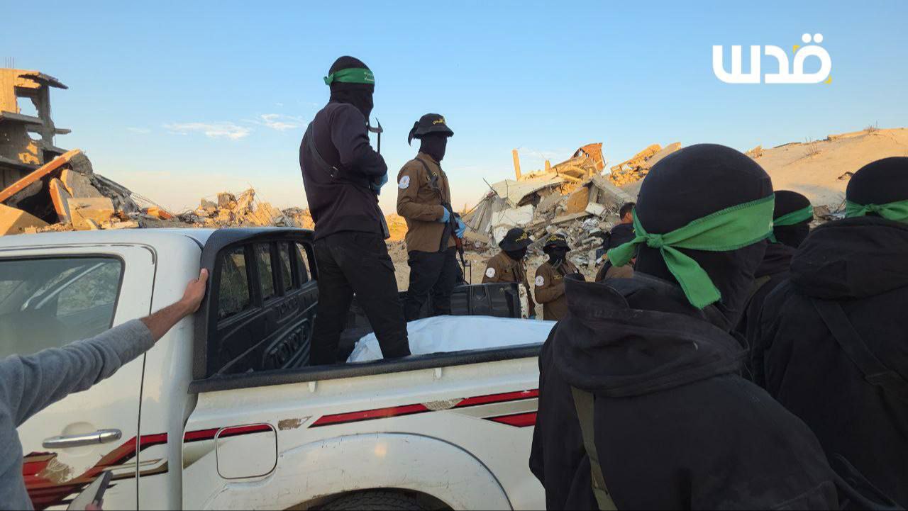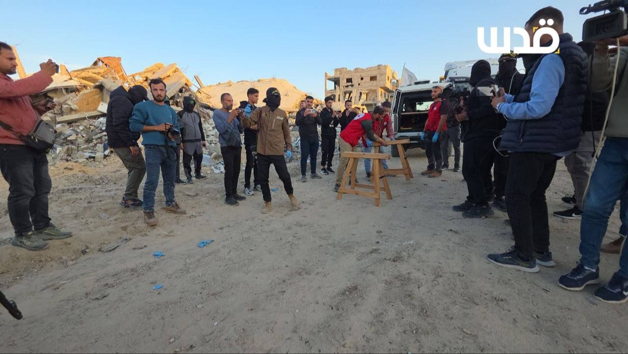 مصادر صحفية: كتائب القسام وسرايا القدس تسلمان الصليب الأحمر جثة أعلنتا أنها لأسير إسرائيلي، في بيت لاهيا شمالي قطاع غزة.
