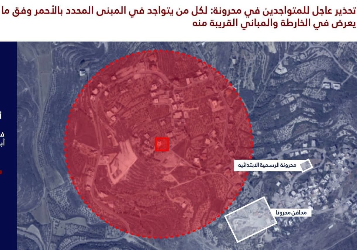 عاجل || جيش الاحتلال الإسرائيلي يهدد بقصف أبنية في بلدتي جباع ومحرونة قضاء النبطية جنوبي لبنان