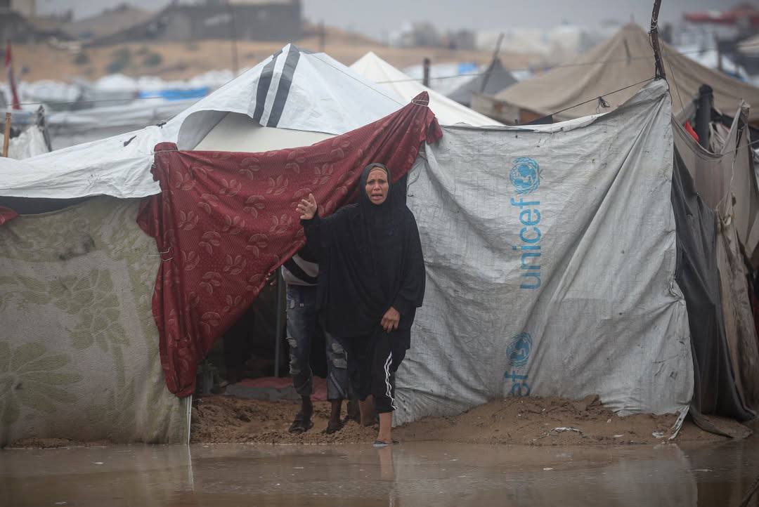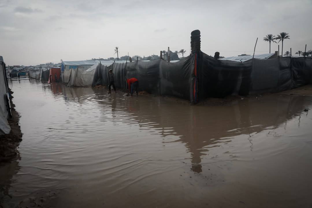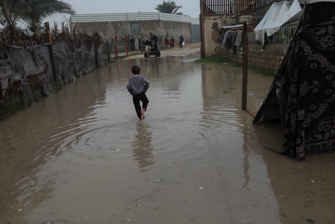 صور تُظهر الأوضاع الصعبة في دير البلح اليوم بعد أن أغرقت الأمطار خيام النازحين