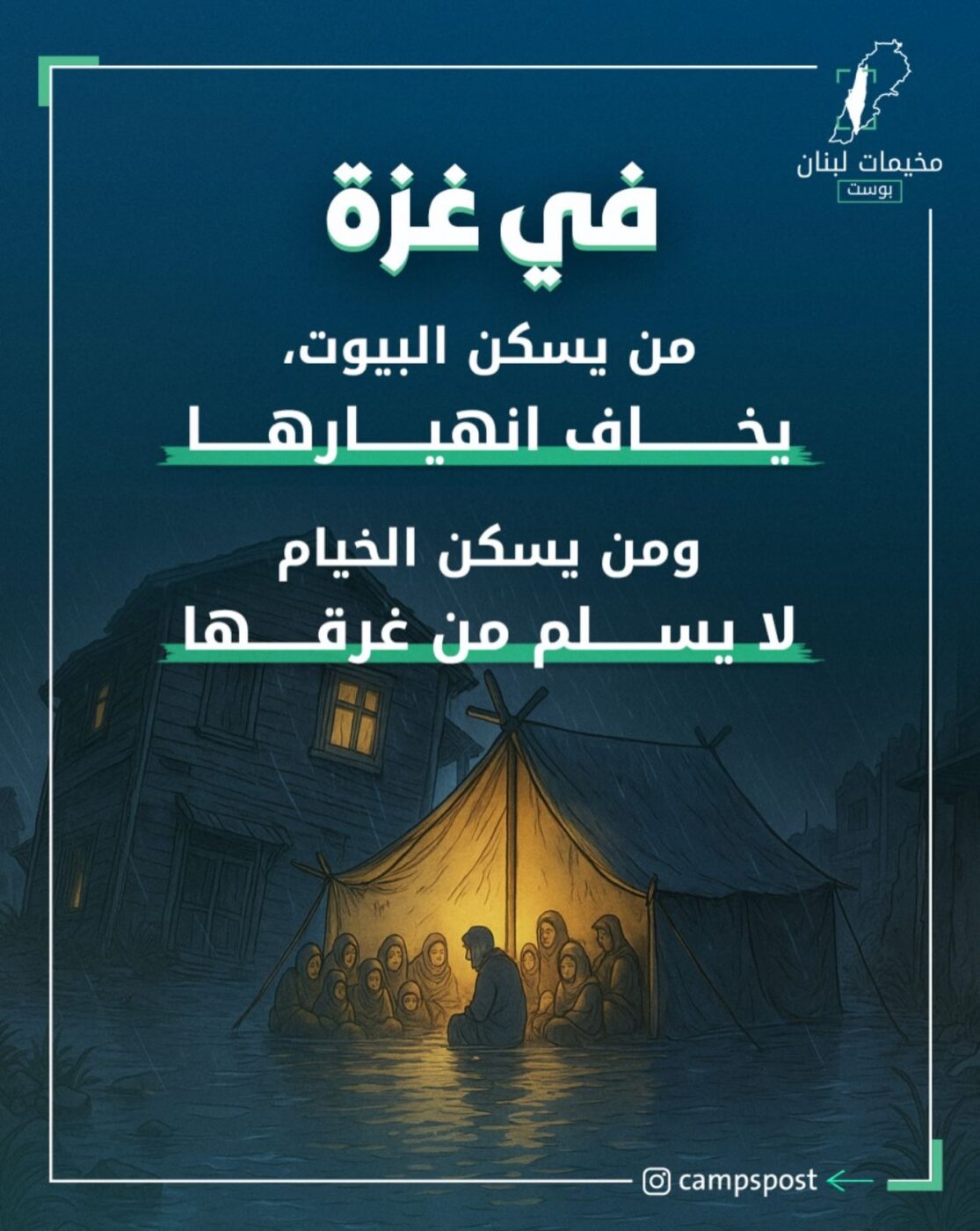 في غزة، ما عاد في “مكان آمن”.بيت ممكن ينهار، وخيمة ممكن تغرق، والناس بين خوفين… تختار الأخف وجعًا 💔