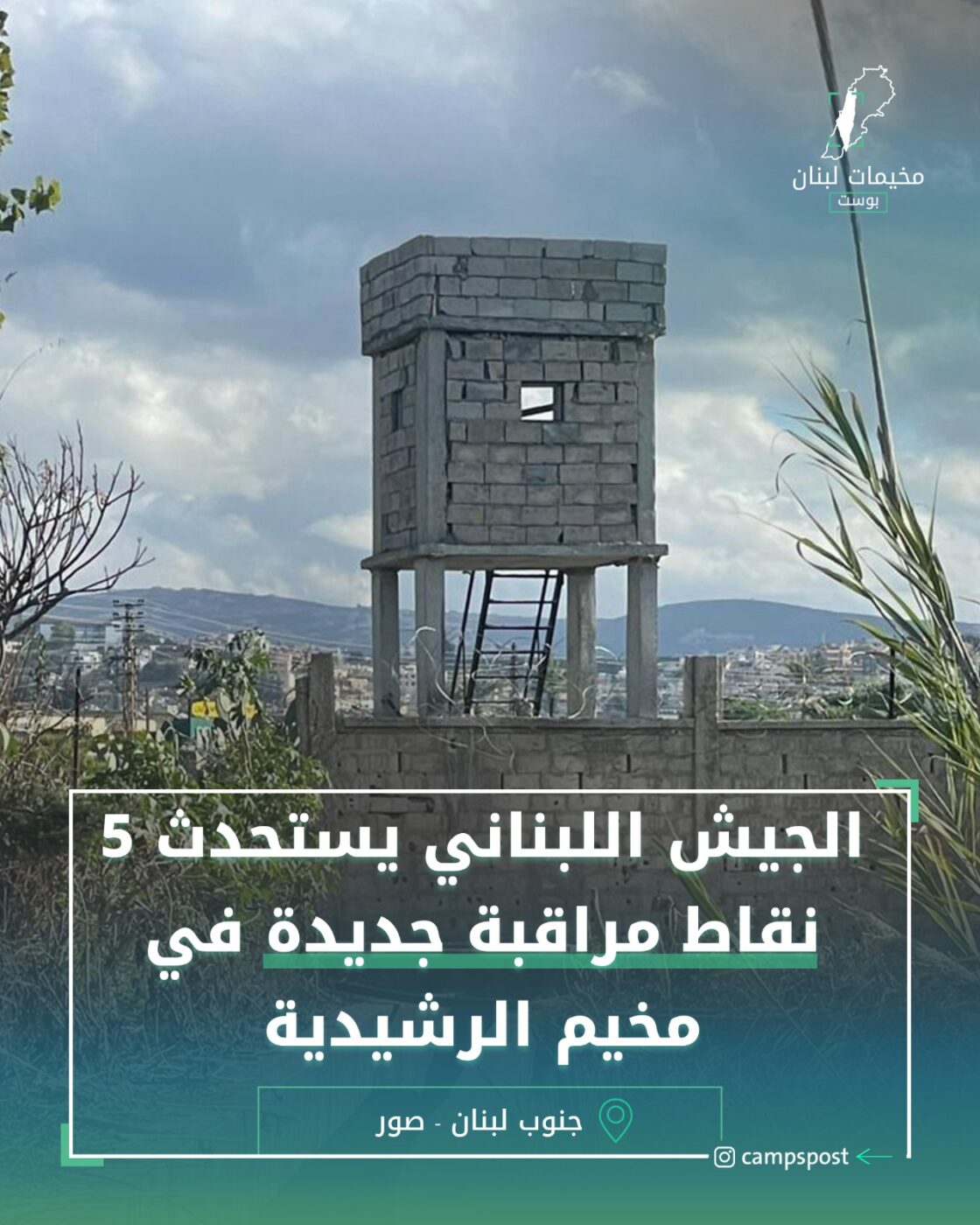 أفاد مراسل مخيمات لبنان بوست، بأن الجيش اللبناني يقوم ببناء وإعداد 5 نقاط مراقبة في ضواحي، مخيم الرشيدية.