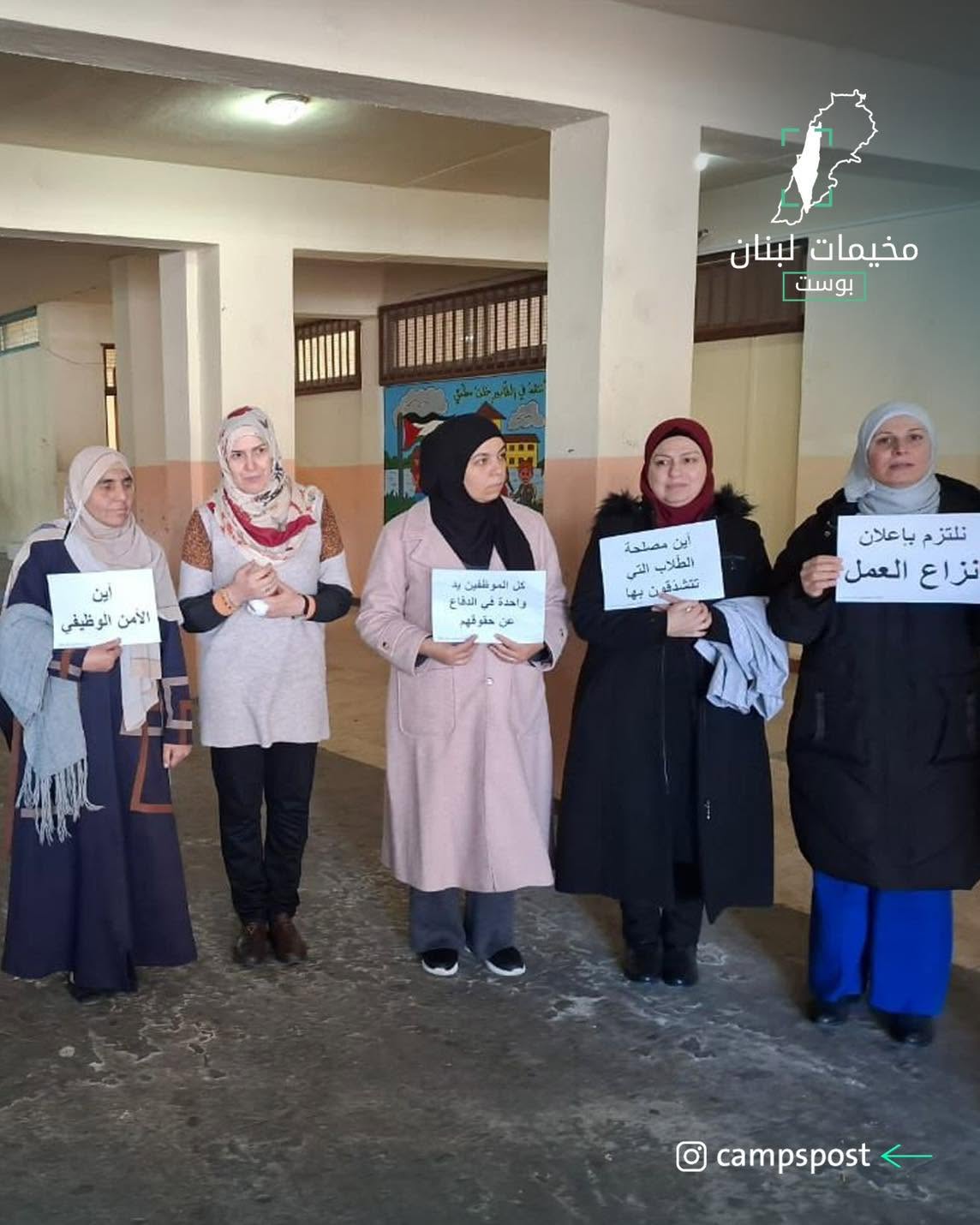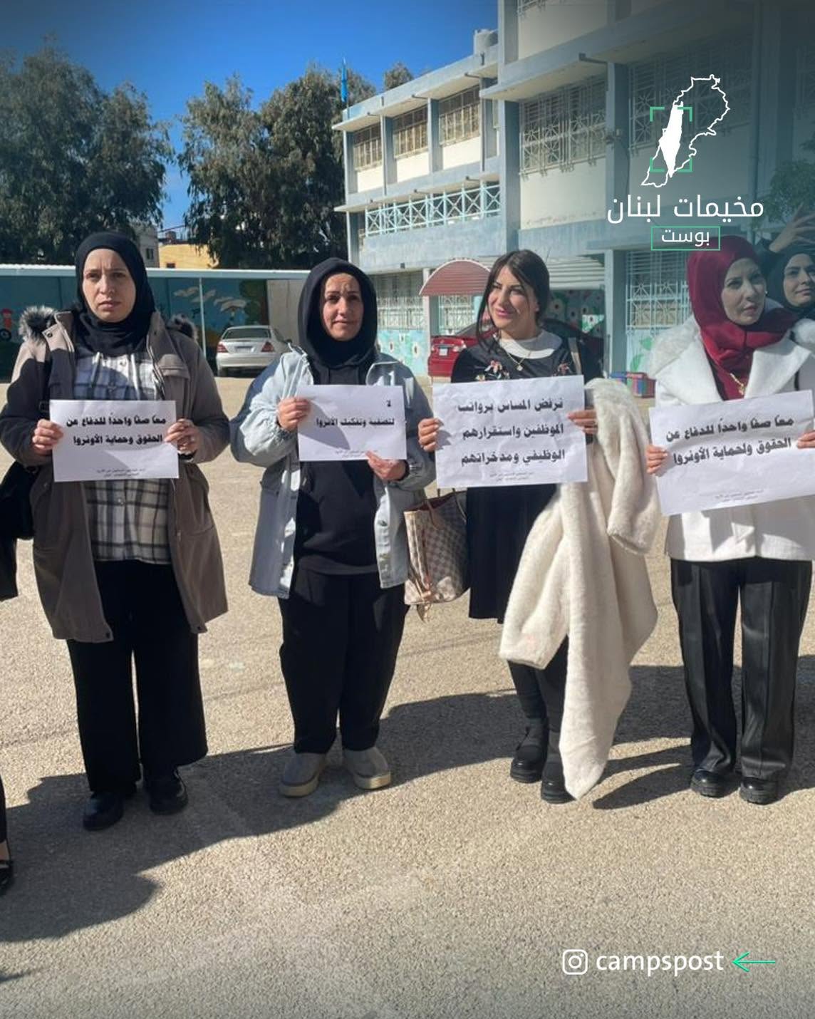اعتصم عدد من المعلّمين الفلسطينيين في مدارسهم احتجاجًا على قرار الأونروا تخفيض رواتبهم بنسبة 20%. وعبّر المعلّمون عن غضبهم من هذا القرار الذي سينعكس سلبًا على العملية التعليمية، مشيرين إلى أن الدوام المدرسي سيُخفَّض إلى أربعة أيام بدل خمسة. يُذكر أن الاعتصام جاء بدعوة من اتحاد المعلمين.