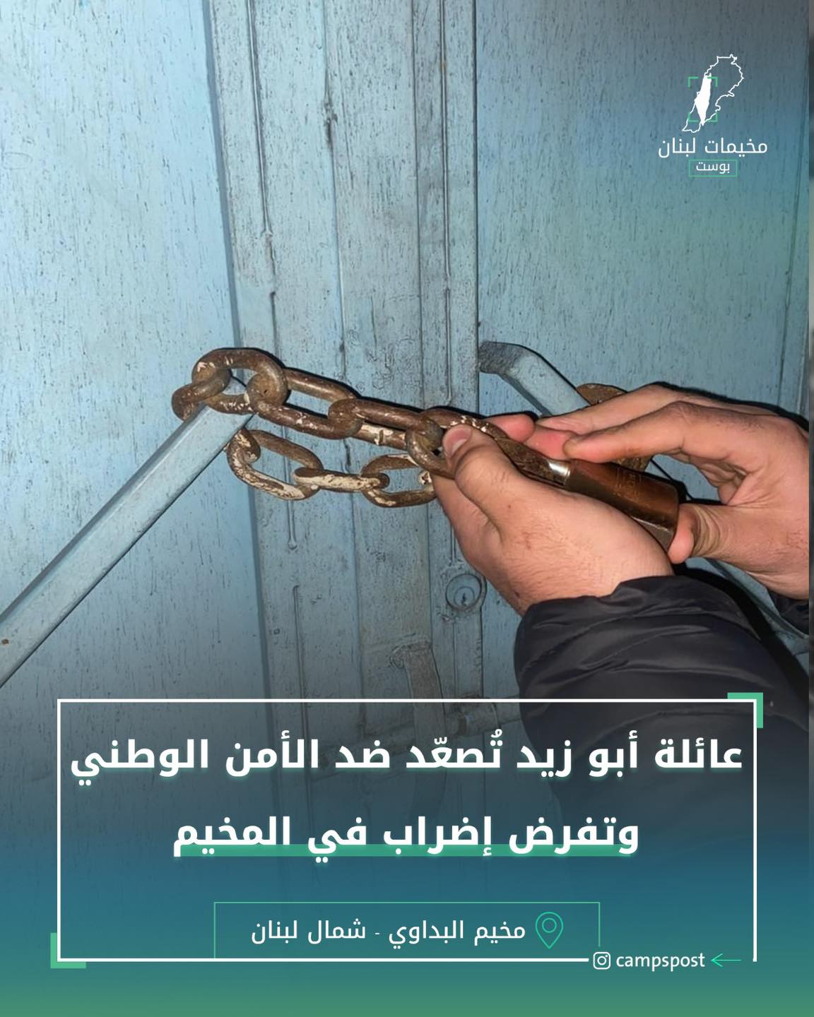 إقفال جميع مراكز وكالة الأونروا في مخيم البداوي، اليوم، من قبل عائلة الفقيد محمد زيد، احتجاجًا على التأخير في تسليم المتورطين بقتله إلى القضاء اللبناني.