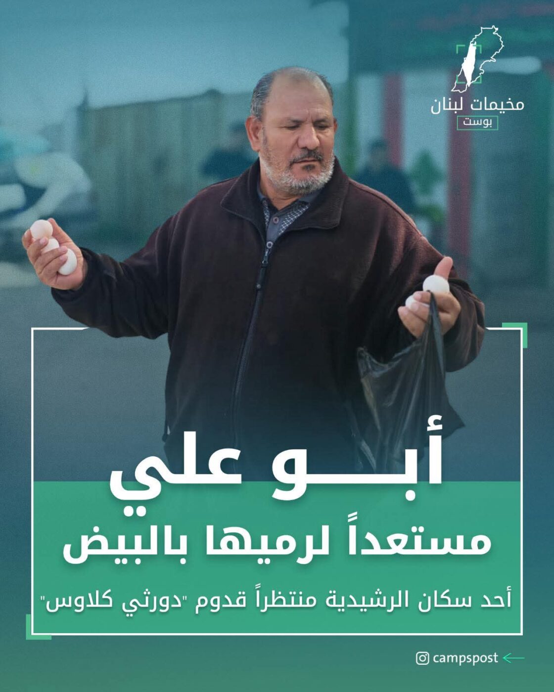 وفور وصول معلومات عن احتمال قيام دوروثي بزيارة مخيم الرشيدية جنوب لبنان، وقف اللاجىء الفلسطيني “أبو علي” برفقة عدد من سكان المخيم بانتظار قدوم “دوروثي” مهدداً برميها بالبيض! السكان اعترضوا على الزيارة بعد قرارت كلاوس المجحفة بحق الشعب الفلسطيني، مطالبينها بالرحيل فوراً!
