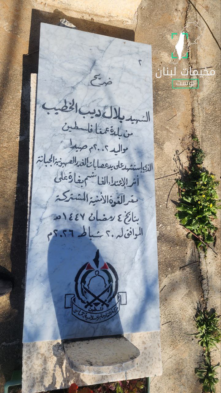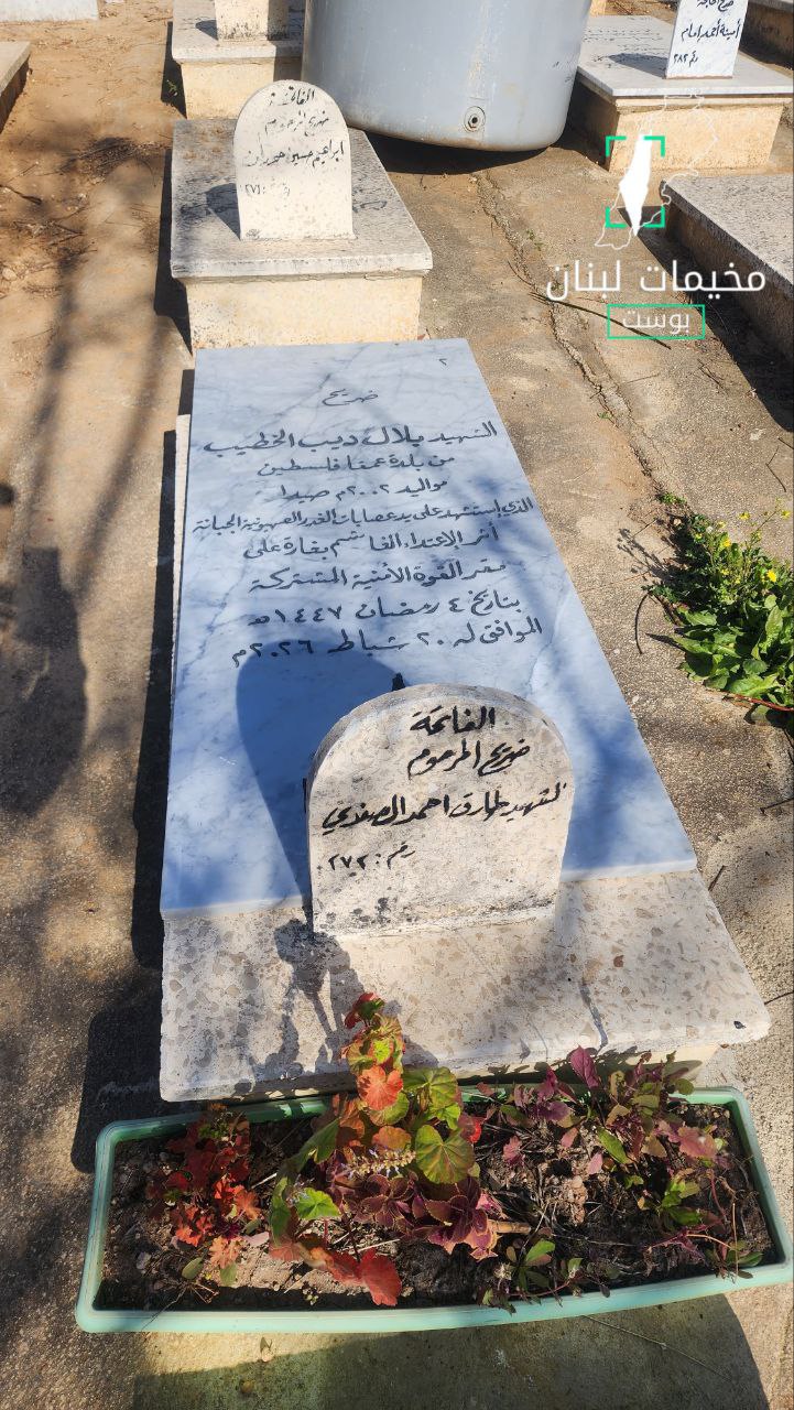 أقدم مجهولون على تخريب وتغيير مكان شاهدتي قبرَي الشهيدين بلال الخطيب والصاوي في مخيم عين الحلوة. كما عُثر قبل أيام على شاهدة قبر الشهيد سامر الحاج، الذي استشهد قبل نحو عام، محطّمة. ولم تُعرف حتى الآن الجهة التي تقف وراء هذه الأفعال أو دوافعها.”
