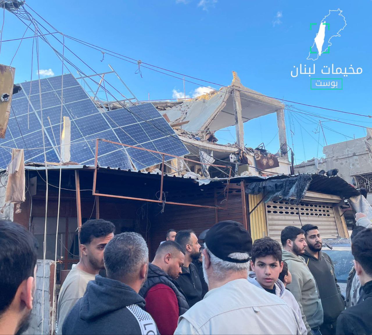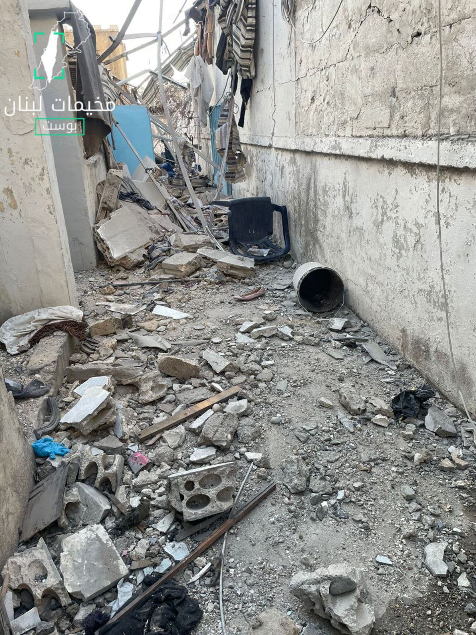 جانب من الأضرار التي لحقت بالممتلكات جراء الغارة الصهيونية التي استهدفت مخيم عين الحلوة