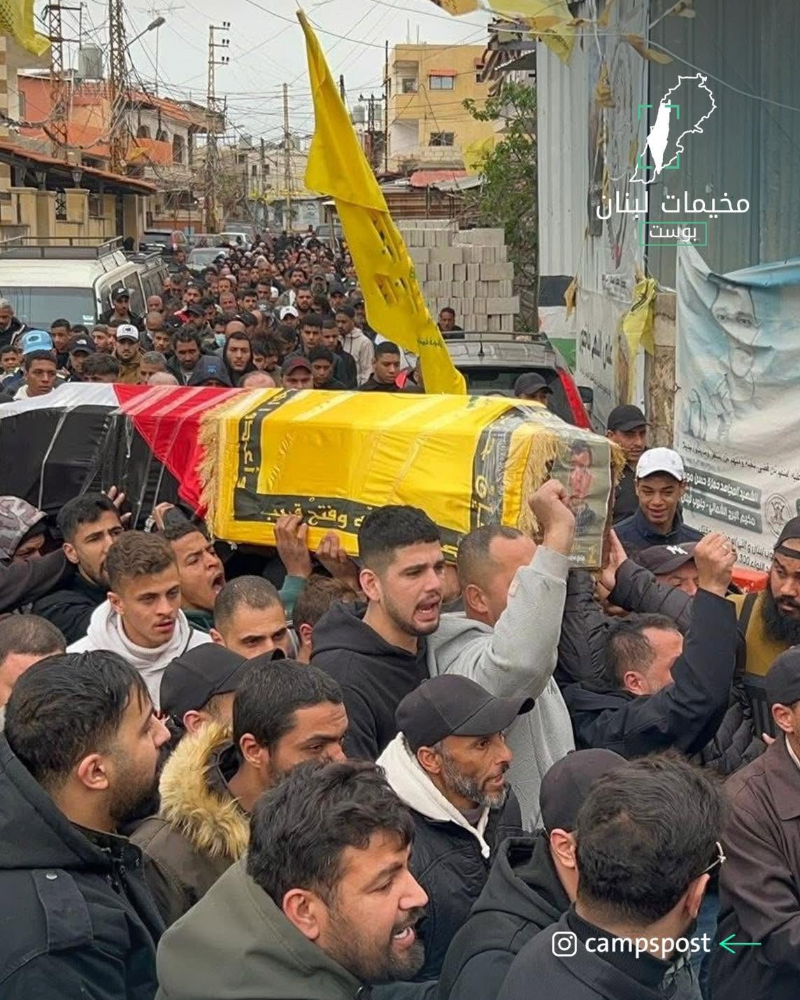 شيع أبناء مخيم برج الشمالي جنوب لبنان، الشاب “هادي عبدالرحمن” إلى مثواه الأخير في موكب مهيب بعد أن ارتقى بقصف اسرائيلي.