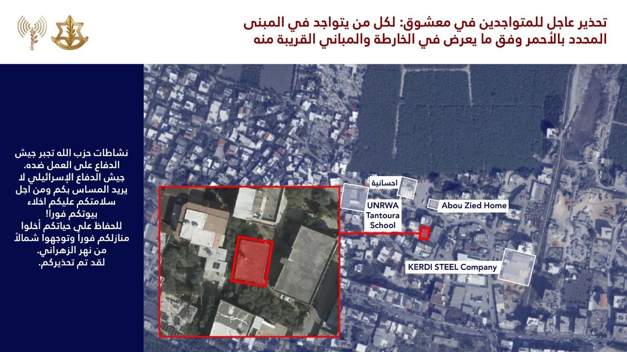 جيش الاحتلال يهدد ويصدر إنذار بإخلاء مباني في مدينة صور ومنطقتي المعشوق والبرج الشمالي جنوب لبنان