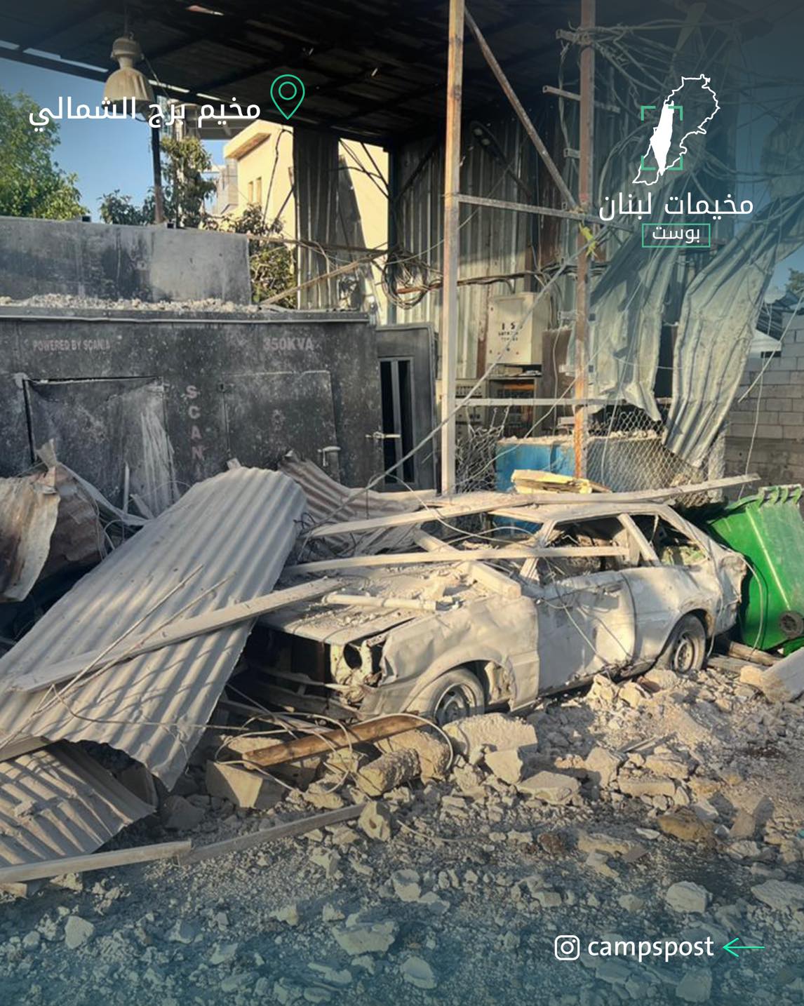 أضرار مادية كبيرة جراء غارة استهدفت محيط مخيم برج الشمالي للاجئين الفلسطينين في جنوب لبنان، حيث اقتصرت الأضرار على الماديات.