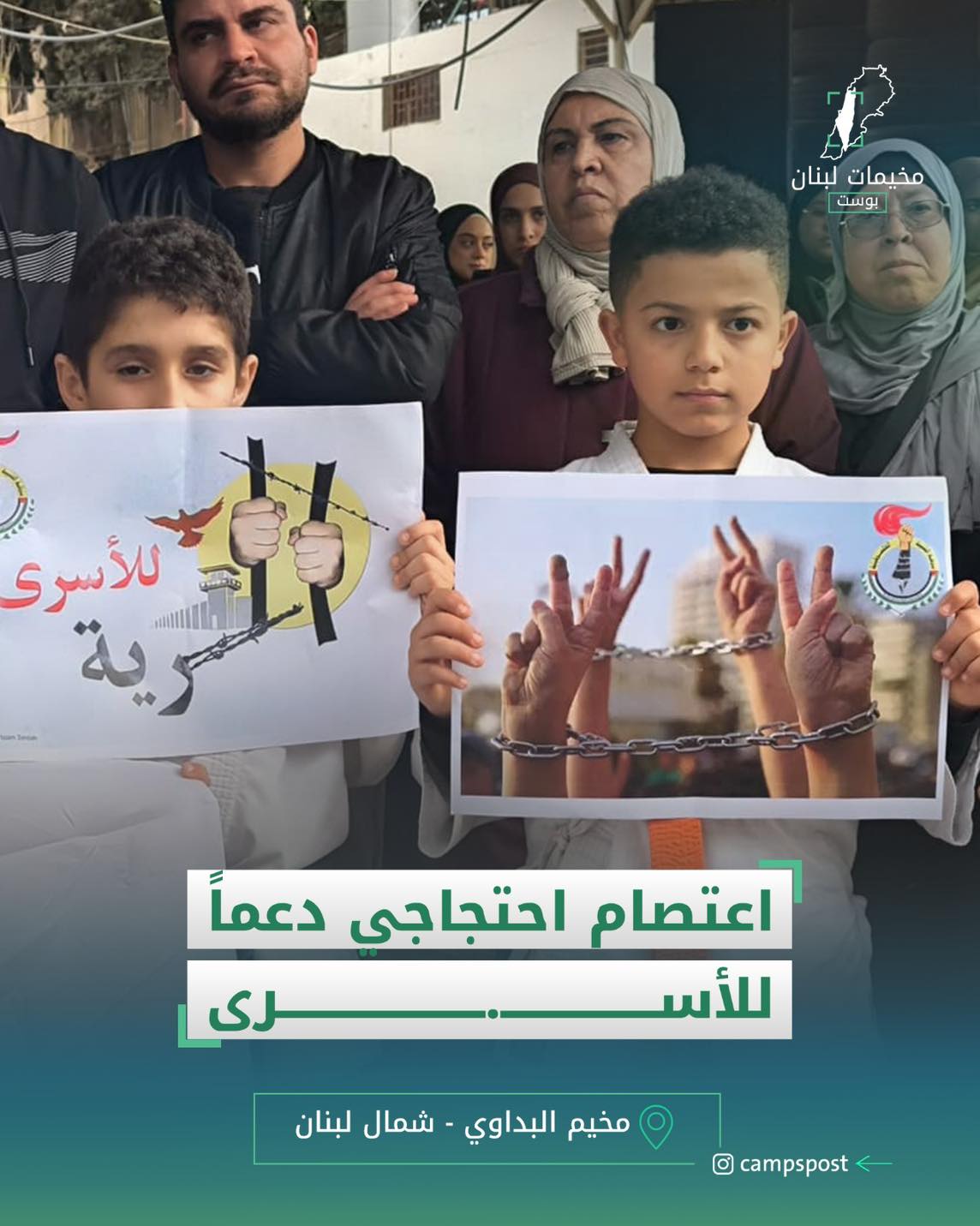 اعتصم عدد من اللاجئين الفلسطينين في مخيم البداوي شمال لبنان، دعماً للأسرى وللمطالبة بضرورة الإفراج عنهم وتخفيف القيود.